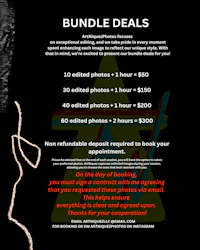 We encourage you to email Artniquezphotos to request your booking, providing a detailed description of your desired session after reviewing our policies.